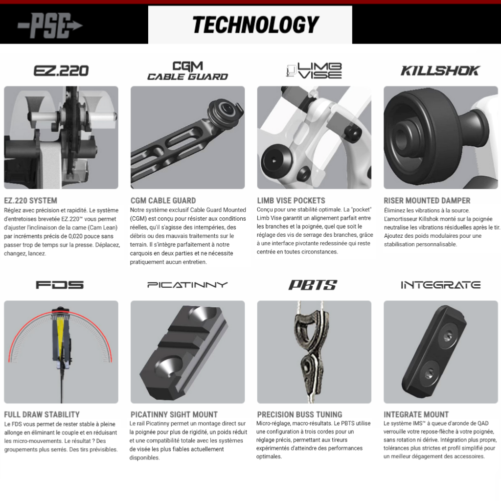 Sacré « Arc de l'année 2024 » par Outdoor Life, le Mach 30 a acquis sa réputation grâce à sa compacité, sa stabilité et sa précision redoutable. Le Mach 30 DS 2026 perpétue cette tradition avec le système révolutionnaire FDS Cam de PSE, qui vous offre 10 fps supplémentaires de vitesse pour pour un vol de flèche plus tendu et frappent plus fort. Un band allongé de près d'un pouce stabilise votre tir lorsque l'adrénaline monte, tandis qu'une butée de came franche verrouille votre ancrage avec un équilibre des forces avant et arrière sans égal.