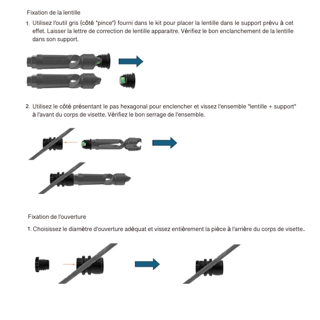 Il comprend 7 tailles d'ouverture, allant de 1/16" à 5/32", afin de garantir un alignement correct de la visette et du scope dans toutes les conditions de luminosité. Il est également livré avec un insert pare-lumière et un outil d'installation sans contact. Le système est compatible avec les lentilles correctrices ""clarifiers" Hamskea (vendus séparément), ce qui vous permet d'étendre ses fonctionnalités selon vos besoins.
