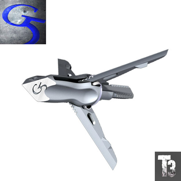 Pointedechasse à lames articulées T3 de la marque G5. Récemmentautorisées, ces pointes de chasse offrent l'avantage d'un vol trèssimilaire aux pointes de tirs de même poids, d'où une précisionaccrue.